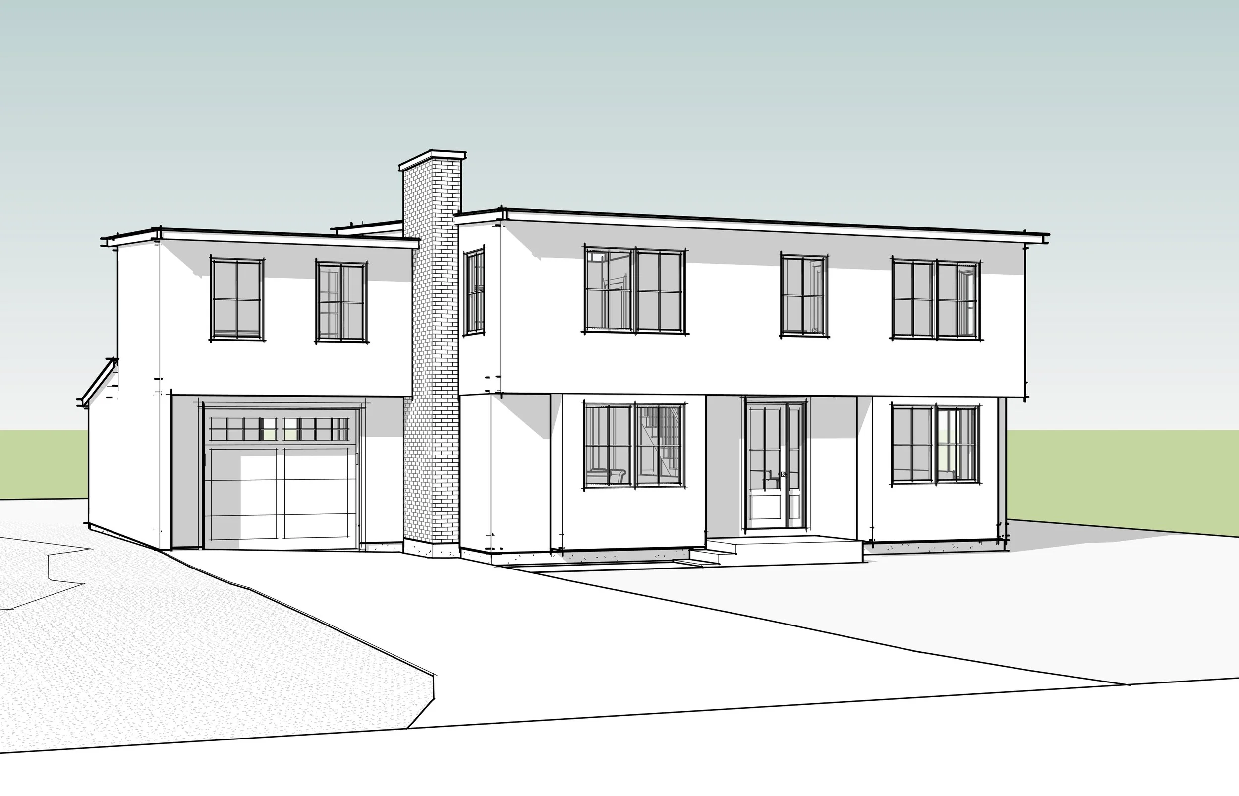 Early designs looked at maintaining the form of the house by adding dormers to the street side of the house, a gesture common with this typology. In addition the garage footprint was unchanged as a cost-saving effort.