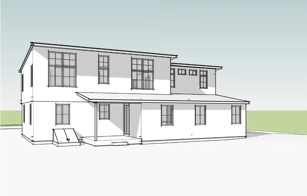 However, the idea that was really sticking with me was one that I had done a quick concept sketch of during our first design meeting. In response to the shed dormers at the first meeting the client had asked for a way to do transom or clerestory windows on the back side of the house to pull in the full days worth of sunlight. I feel that having good daylight in a building of any kind is beneficial to a users well-being and has been shown to reduce energy consumption, so a win-win that I try to include in projects whenever I can. Being concerned about meeting local height restrictions I quickly sketched a shed roof (the most basic form of roof) pitching towards the street (north) and allowing for the transoms on the south side. Even though the client had specifically asked for some traditional gable-type roof forms I could tell that they were thinking of something a bit outside of the traditional New England context - something I’m happy to oblige!