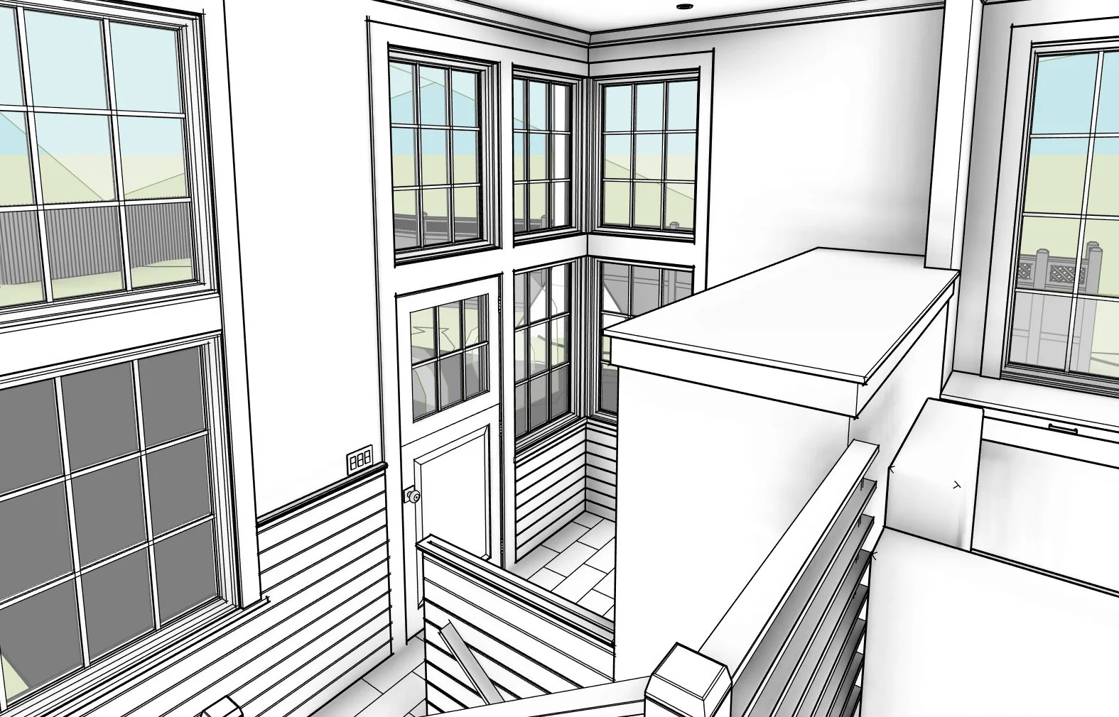 This month I’m spending a lot of time on the details of a expansion/renovation of a Victorian style house in Newton that I call the Highland House. The client came to me wanting to take out a back stair so that they could renovate a shared kids bathroom without having to work around it. They also were interested in a better connection to the driveway for when the family comes and goes as well as an expanded kitchen/family living area.