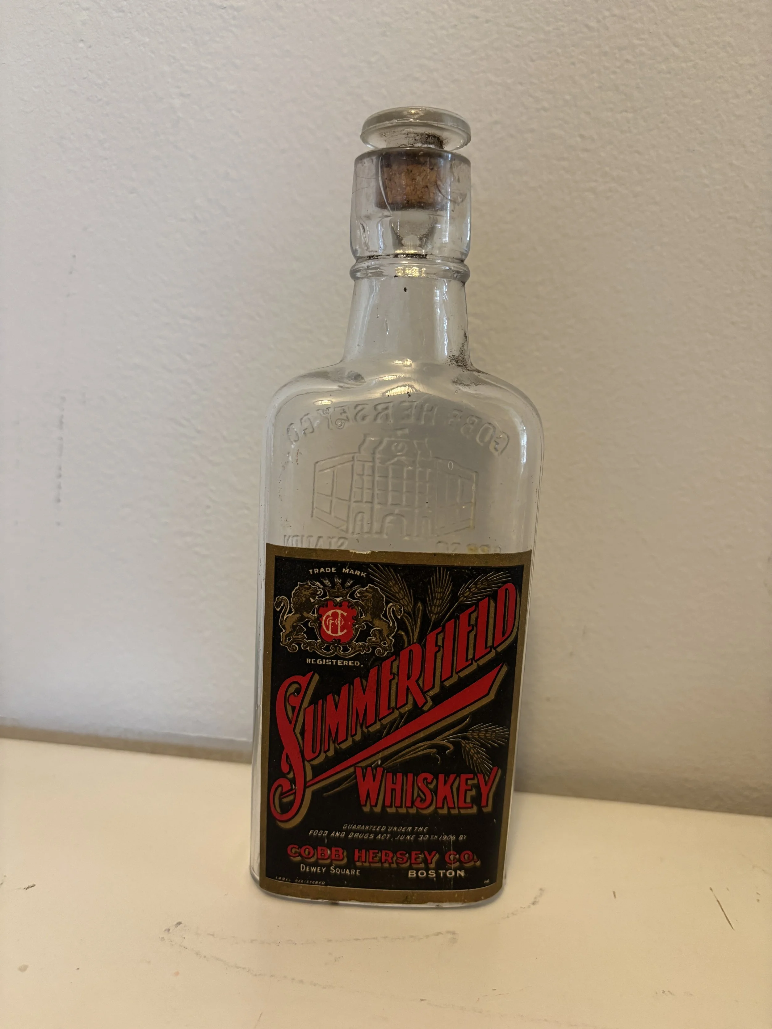 One fun and unexpected find was this (empty) bottle of Summerfield Whiskey, which was found inside a wall that was opened up as part of demolition for a bathroom renovation. The whiskey was bottled by the Cobb Hersey Company in Dewey Square “Opp. So. Station, Boston Mass.” probably in the 1906-1916 timeframe and might’ve retailed for around $1.00. Now just the bottle is going for $20 on some websites! I’m hoping that this was a some hard working persons reward at the end of a long days work and got left behind rather than something they were sipping on throughout the workday!